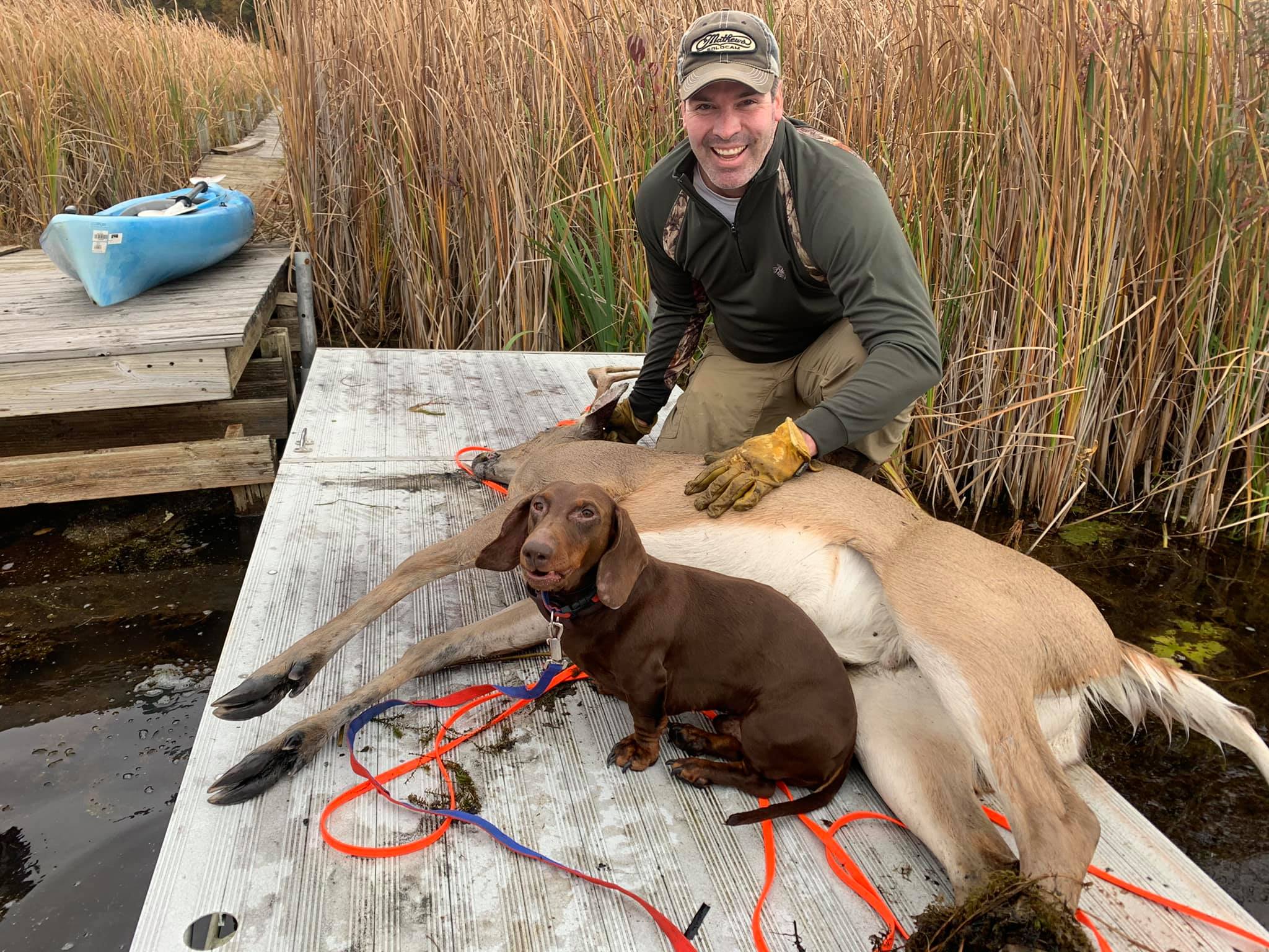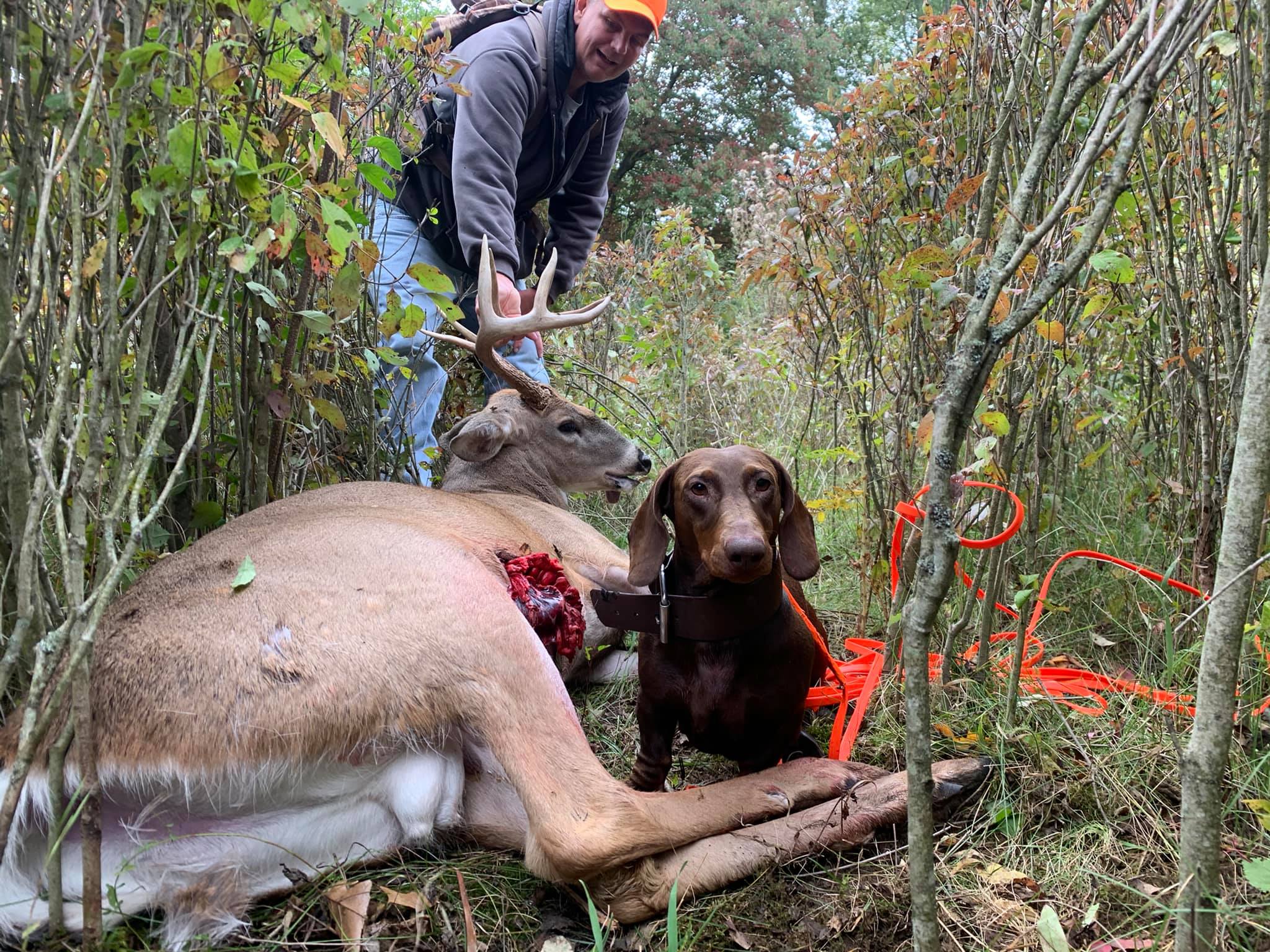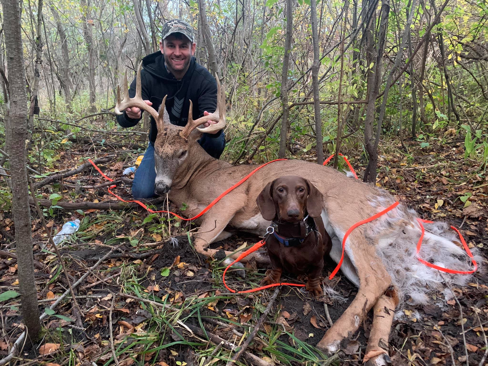 The dog is a 4 year old dachshund who is trained in the art of finding your game. With a very high success rate, Last Chance Deer Tracking is the place to call.